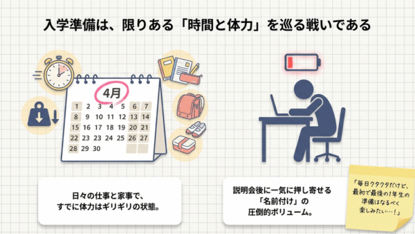 入学準備はいつもタスクにプラスアルファの作業が入るため、焦りを感じることもあると思います。でも、完璧じゃなくてもいいんです。