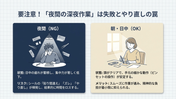 できれば 朝や日中の時間帯 に作業する方がスムーズです。
